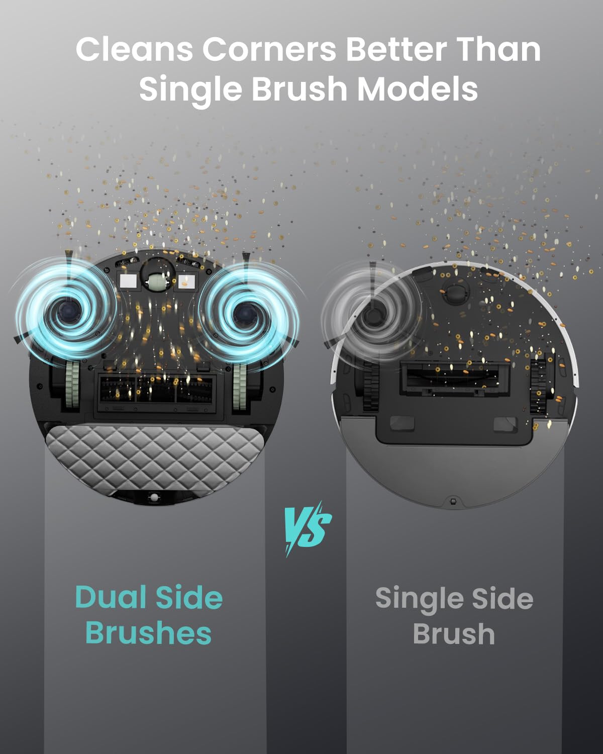 - 5500Pa Powerful Suction for Deep Cleaning: With up to 5500Pa of suction power, the robot vacuum easily captures dust, pet hair, and large debris from carpets and hard floors. It offers three suction levels to adapt to different cleaning needs, ensuring efficient performance on every surface